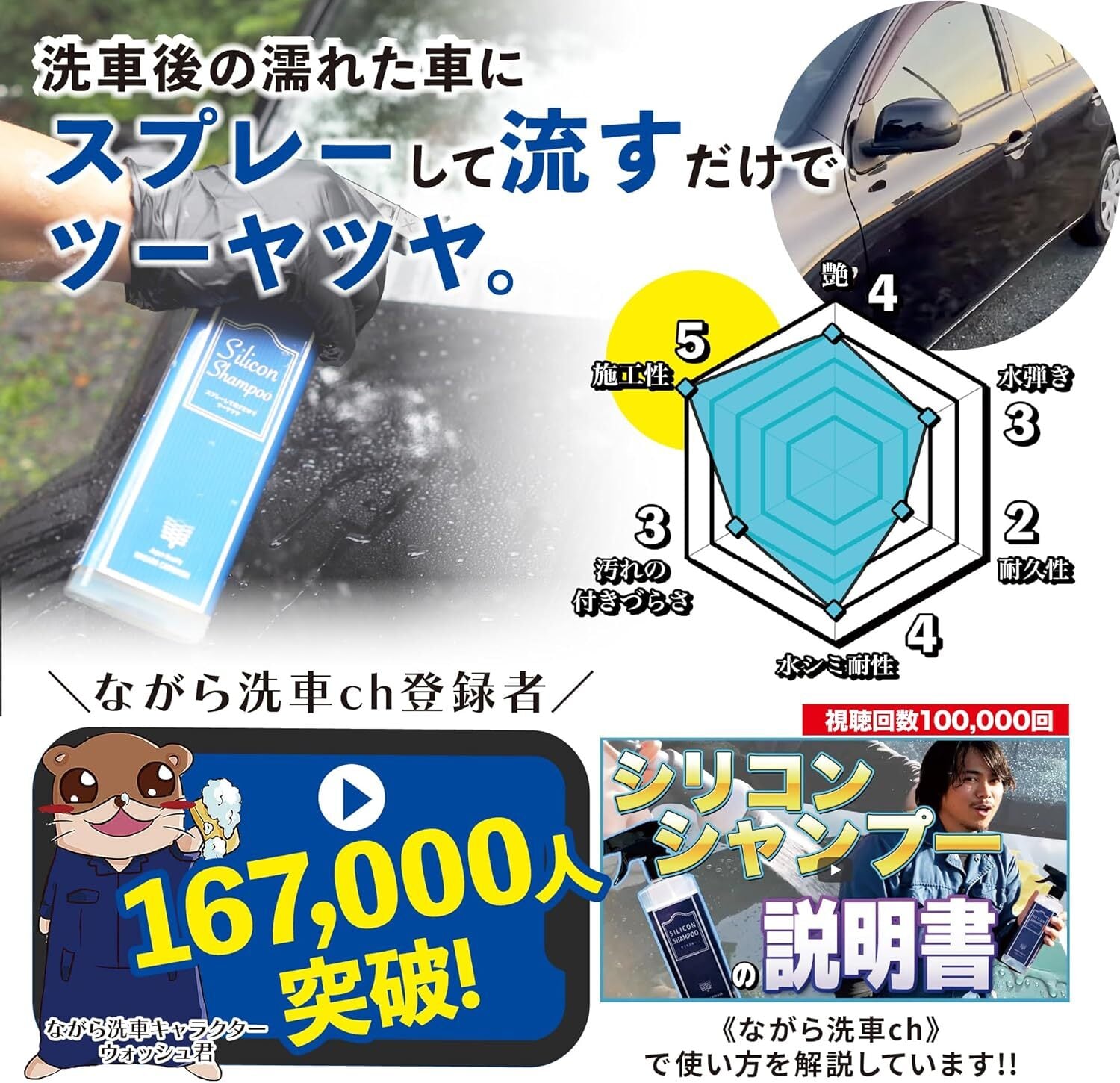 ✅シリコン洗車の発想から生まれたシリコンシャンプー!艶光沢、水シミ雨染みに強いシリコン洗車の強みを活かしつつ、施工の難しさを無くしたコーティング剤です✨