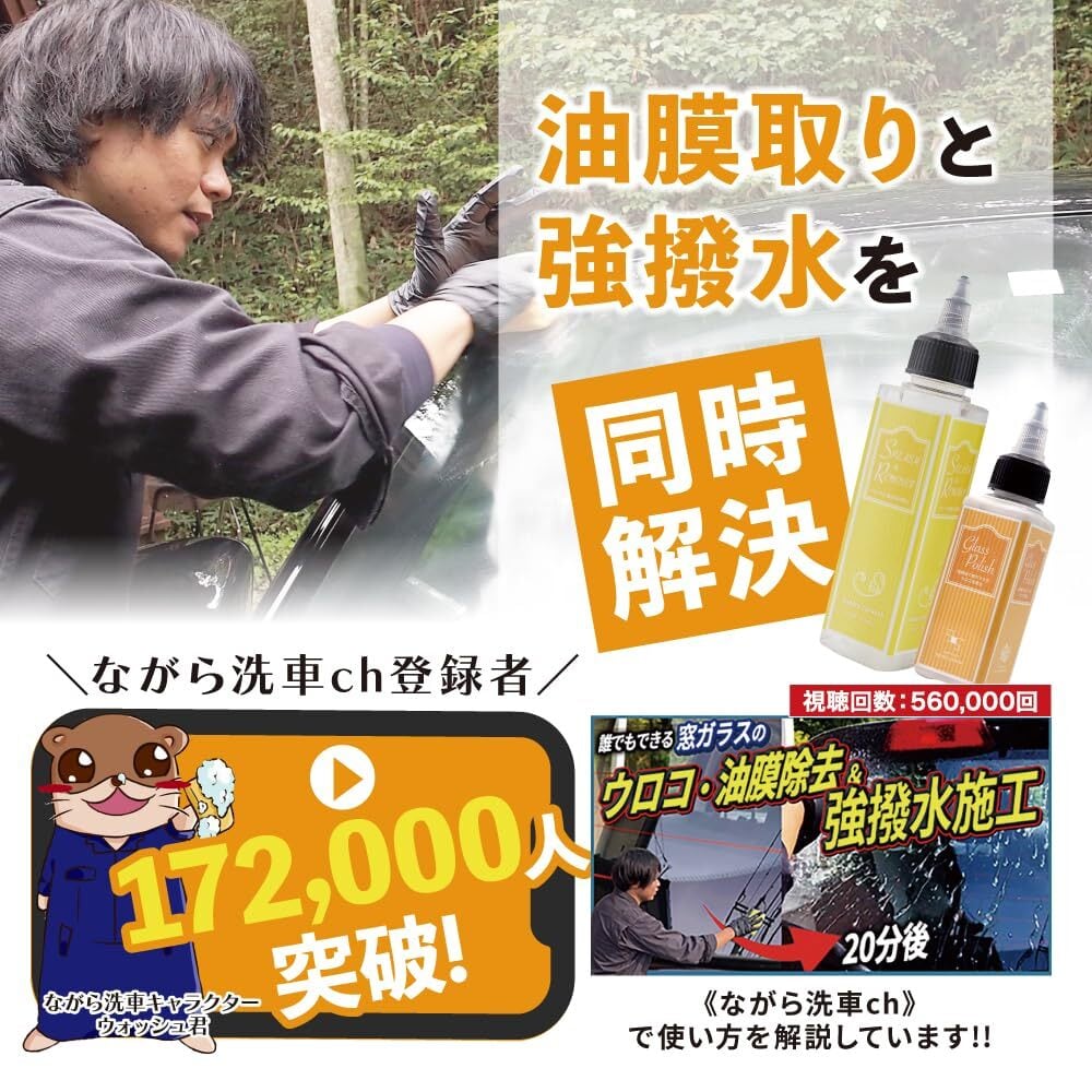 【ながら洗車】スプラッシュ&ガラスポリッシュ『 ウロコ退治と強撥水で窓ガラスに安全を 』 ポーチセット 油膜取り 車 ガラスウロコ フロントガラス 撥水 窓ガラス ウィンドウ | ながら洗車 公式ショップ